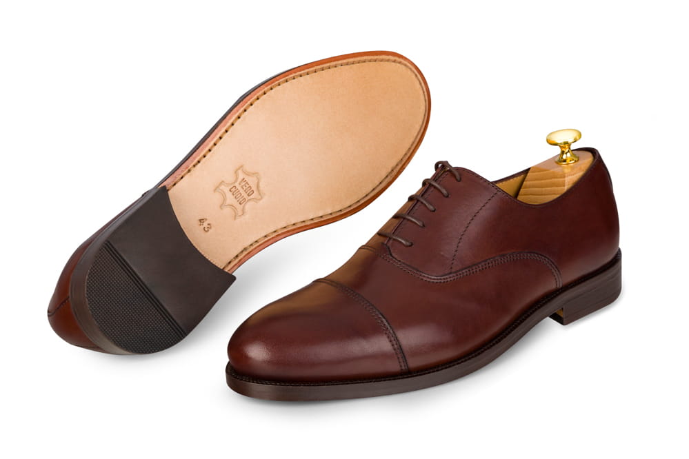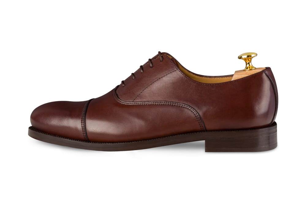 Boty OXFORD v hnědé barvě jsou vyrobeny zcela z kůže. Vnitřek obuvi tvoří měkká kožená vložka, která zajišťuje pohodlí a eliminuje pocit únavy nohou. Překrytá špička, jemné prošívání a dynamicky vedené linie umožnily spojit klasické proporce s dokonalou kvalitou. Boty jsou ušity metodou blake, která spočívá v přímém přišití podrážky k svršku boty. Mnoho operací během výroby je prováděno ručně. Charakteristickým rysem těchto bot je jejich pružnost, což se přímo odráží v pohodlí při nošení.